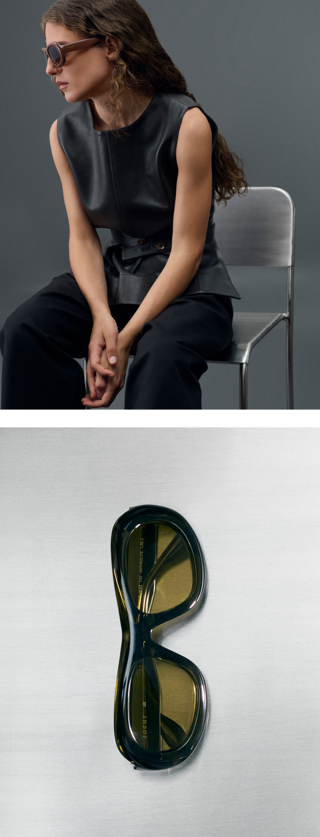 Fabriquées en Italie, les lunettes font dialoguer les matières – acétate, métal – avec l’identité chromatique de Soeur : brun profond, taupe minéral, moka dense, anthracite lumineux et noir intense. L’art du détail se prolonge dans un écrin conçu sur-mesure pour chaque paire, accompagné d’un pochon en coton et d’un linge de soin siglé.