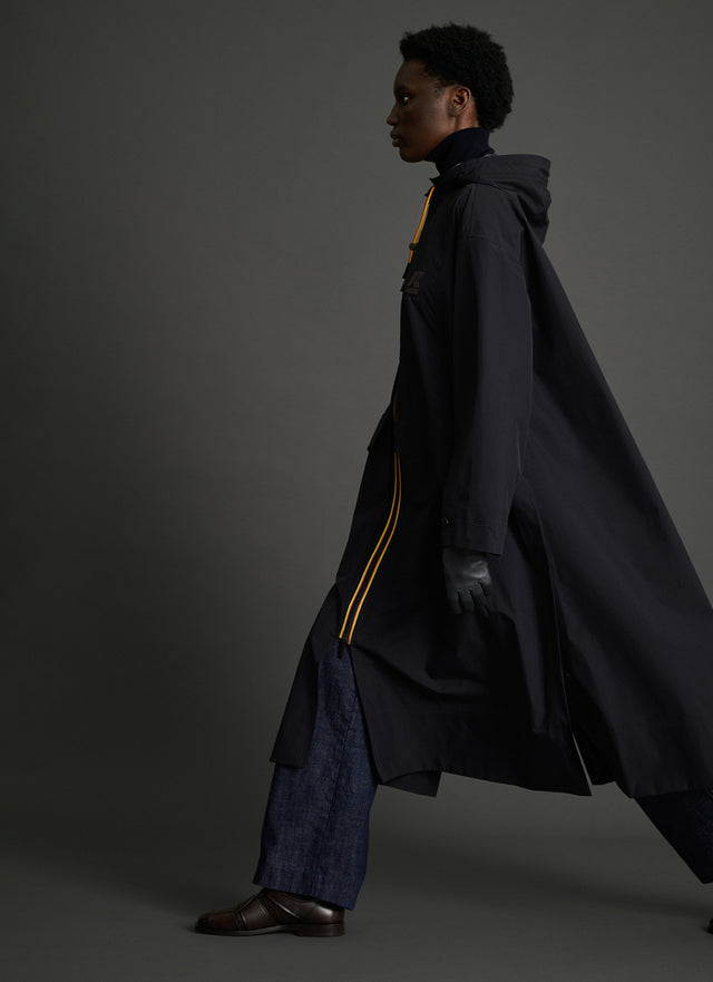 Toujours aussi élégant qu’imperméable, il peut être enfilé sur une tenue complète pour une virée sous la pluie ou être porté en trench classique.