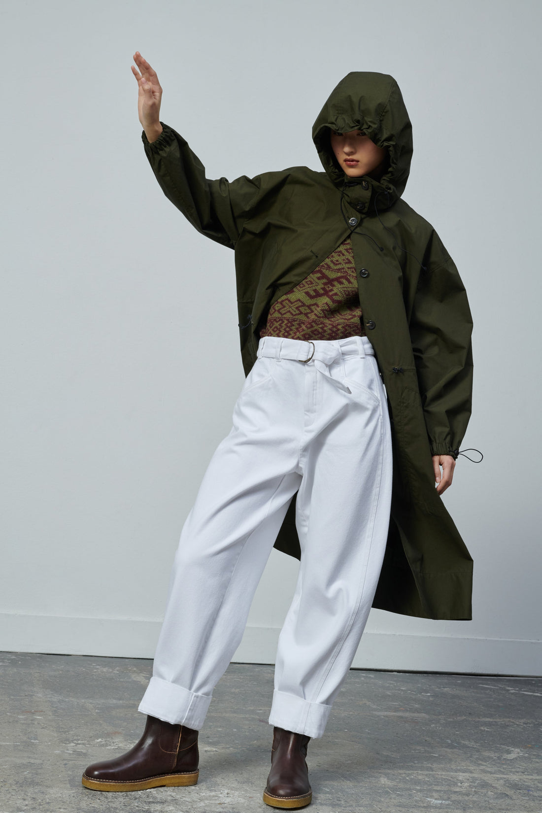 VOLAGE est un pantalon à la jambe ronde et large. Sa taille haute est à resserrer grâce à une ceinture large pour l'adapter à toutes les silhouettes. Il est reconnaissable par ses poches à la découpe en biais. La toile de denim est dense, ce qui apporte de la tenue.