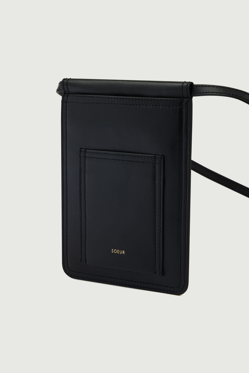 - Pochette plate en cuir lisse à bandoulière ajustable