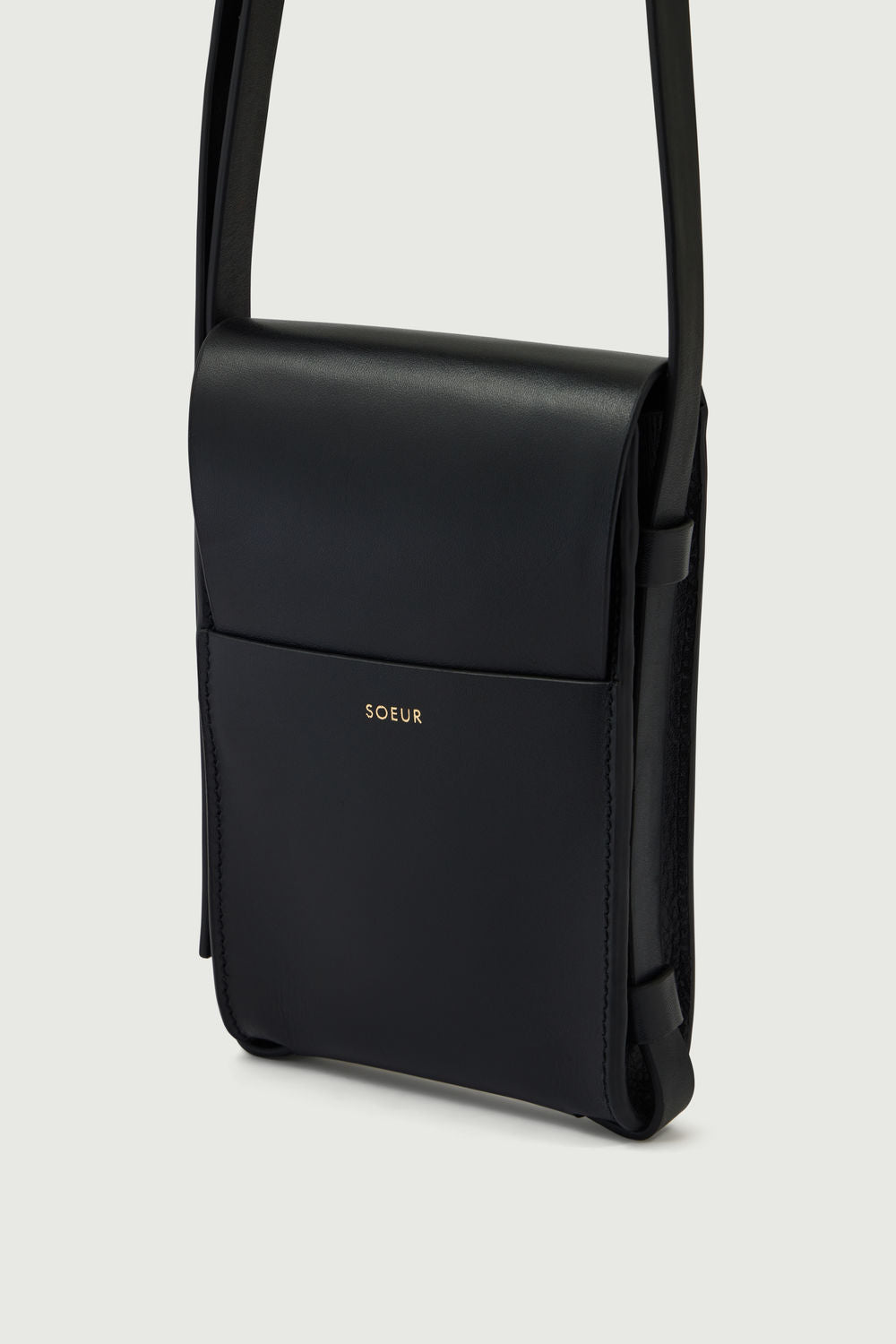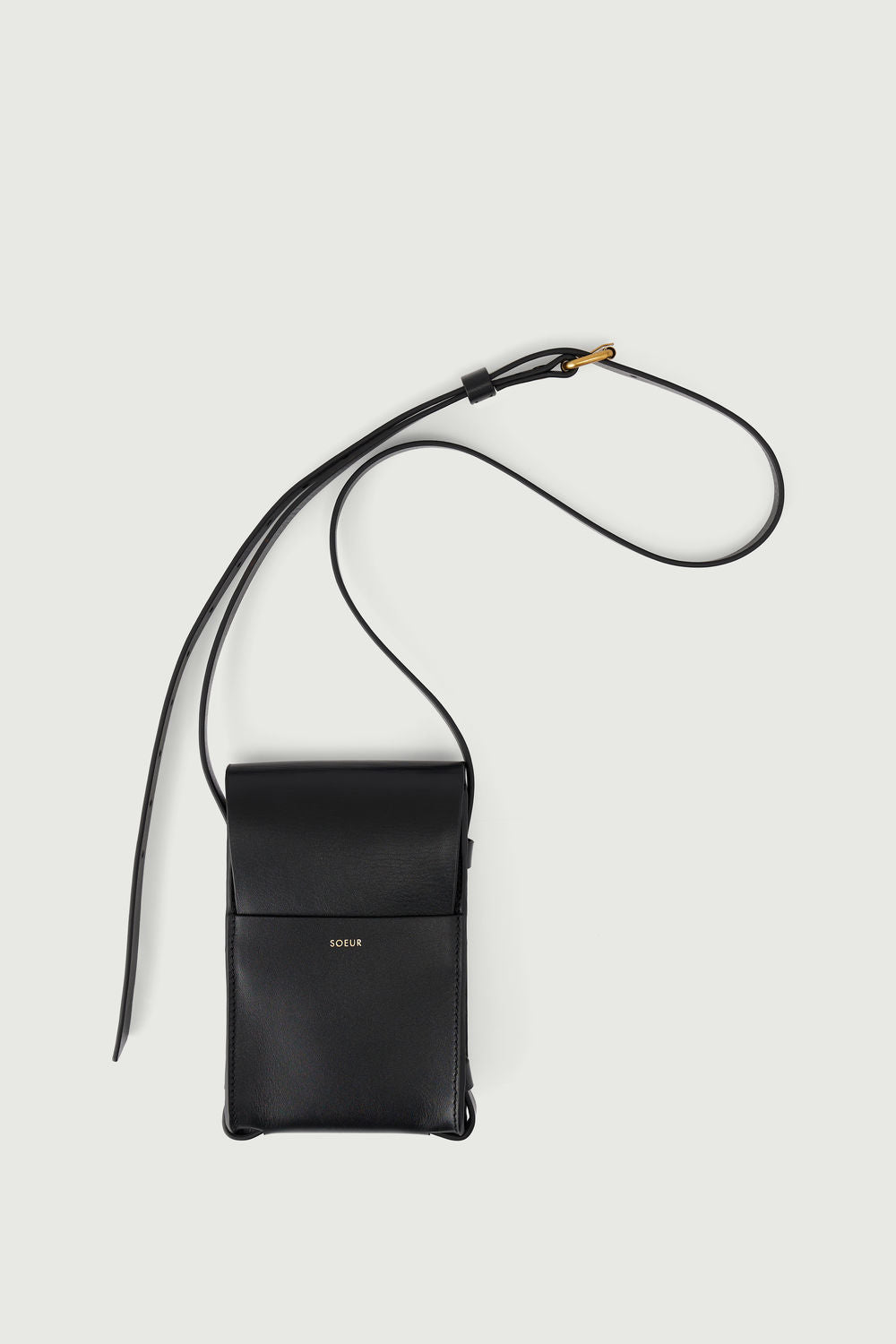 - Porte-téléphone à rabat en cuir lisse à bandoulière