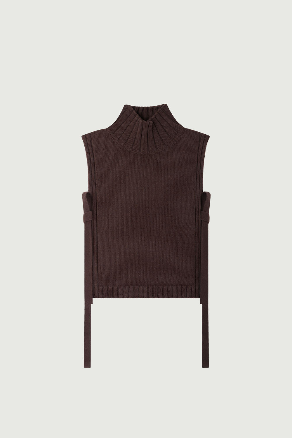 OR est un plastron en laine, ajustable par deux liens sur les côtés à nouer ou à laisser pendre. La maille, tricotée de façon compacte, offre une certaine tenue et un col montant bien droit. Il réchauffera une tenue avec style. Pratique, il permet de ne pas contraindre le mouvement des bras s'il est glissé sous une veste ou un manteau.