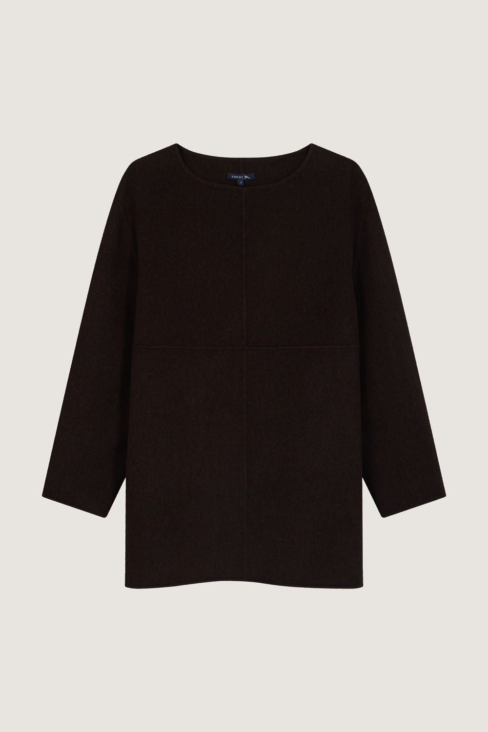 Grand pull en double face - Encolure légèrement bateau- Manches larges et arrondies- Bas de corps liquette avec fentes