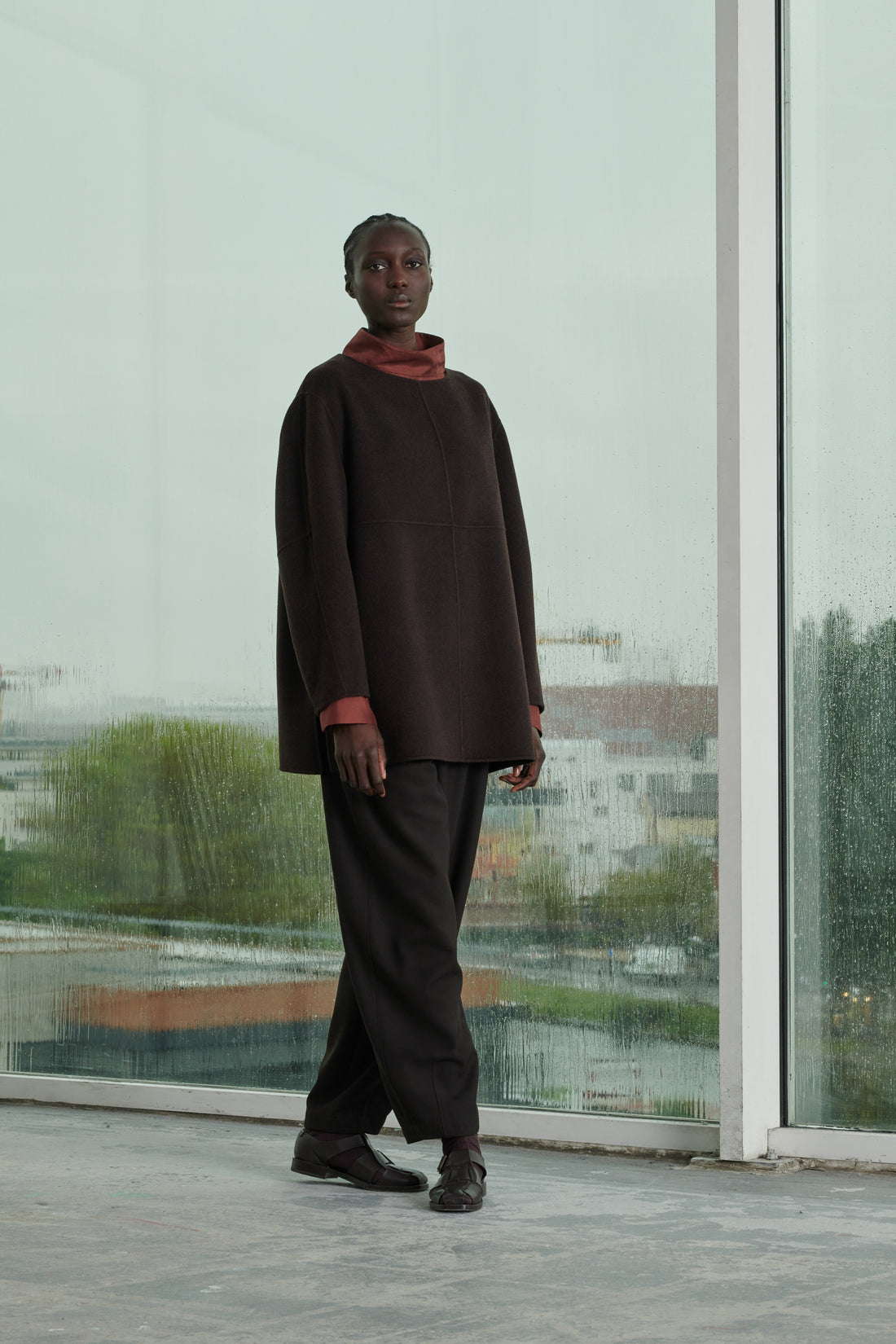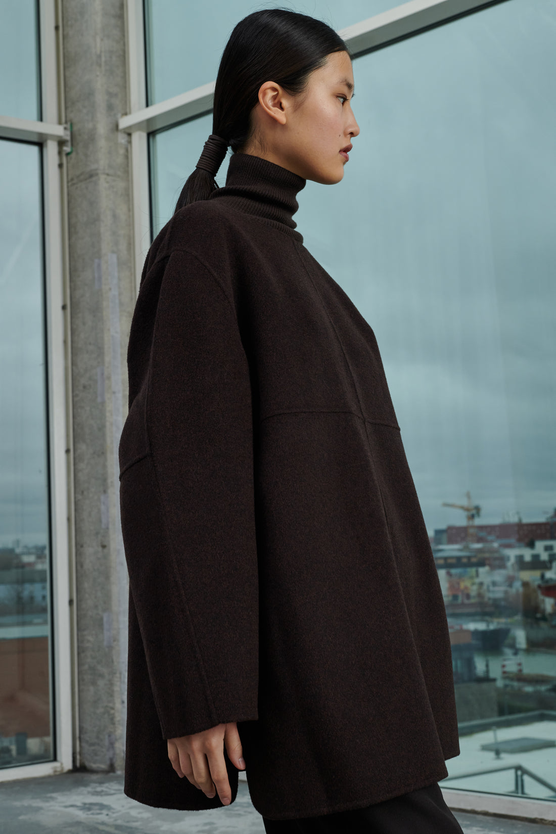 VALERIANE est un pull long et large en laine double-face. Son volume est oversize. Son lainage épais lui apporte de la tenue.