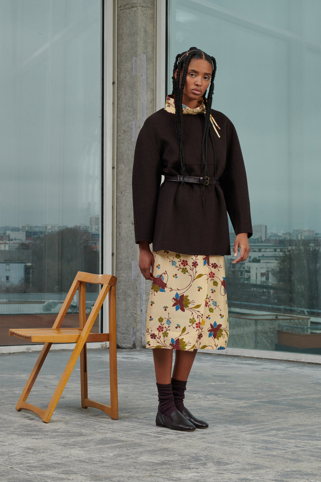 Robe à liens en doupion de soie imprimé - Coupe longue et volume droit, se porte avec ou sans ceinture- Col large et tombant- Système de lien décoratif- Boutonnage caché au milieu devant jusqu’au mi-cuisses- Manches longues larges avec système de boutonnage aux poignets- Fente au milieu devant- Ceinture amovible