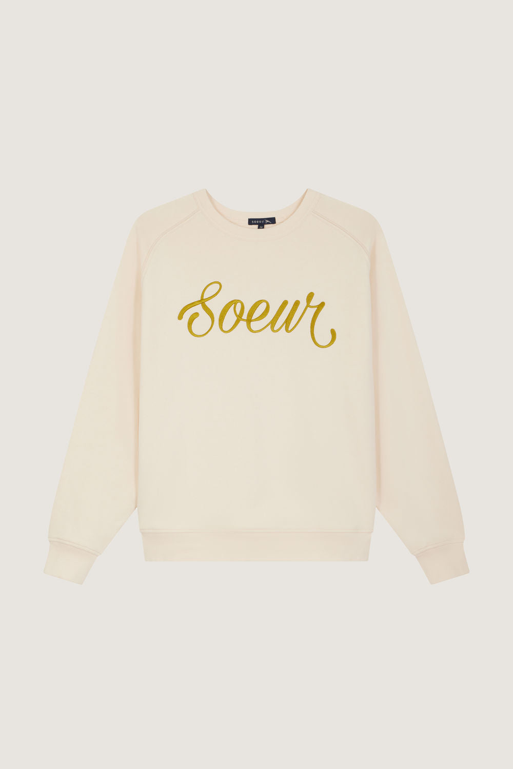 Sweat-shirt oversize avec broderie - Volume ample, encolure ronde- Finitions bord côtes- Inscription "Soeur" brodée en vert anis- Emmanchures marteau et finitions passepoiles